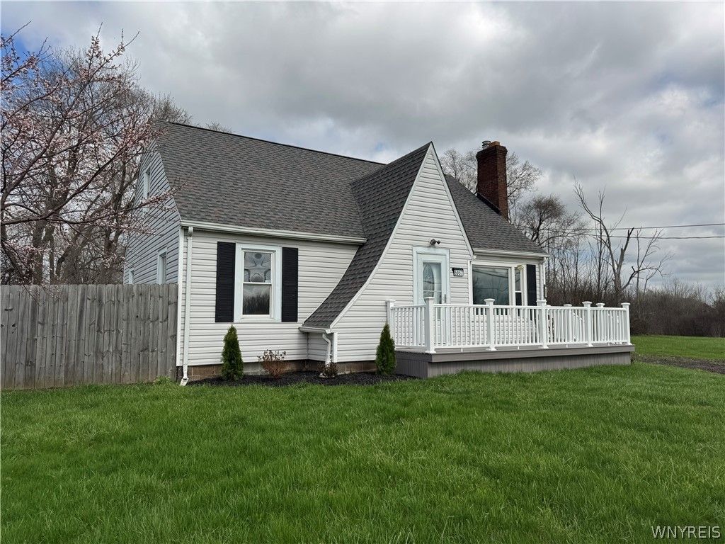 Adorable Cape Cod in highly sought-after Lewiston, located within the Niagara Wheatfield School District! Set on an over half-acre lot, this home features a privately fenced backyard and a great shed-perfect for storage, hobbies, or outdoor entertaining. Enjoy your morning coffee on the inviting front porch with low-maintenance Trex decking and plenty of space to relax. Step inside to a spacious living room centered around a cozy fireplace, creating the perfect gathering space. The kitchen offers abundant cabinet storage and granite countertops, blending style and functionality. The beautifully updated tiled bathroom adds a touch of luxury, while the large primary bedroom provides a comfortable retreat. This home offers the perfect combination of charm, space, and location!